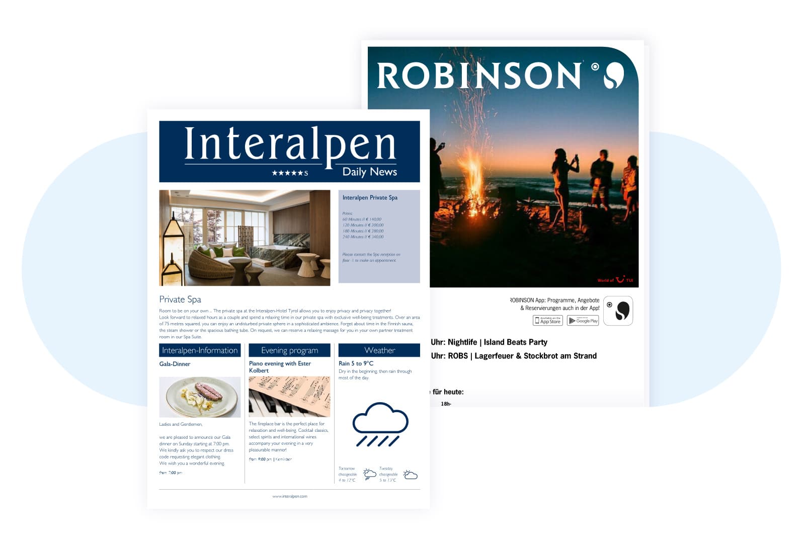 Hotel MSSNGR automatically generates all of your hotel’s print material. The daily or weekly guest newspaper is automatically created by our Data Management Hub based on rules for filling in the content. This saves you a lot of manual daily work. And don’t worry, everything can be edited if necessary.